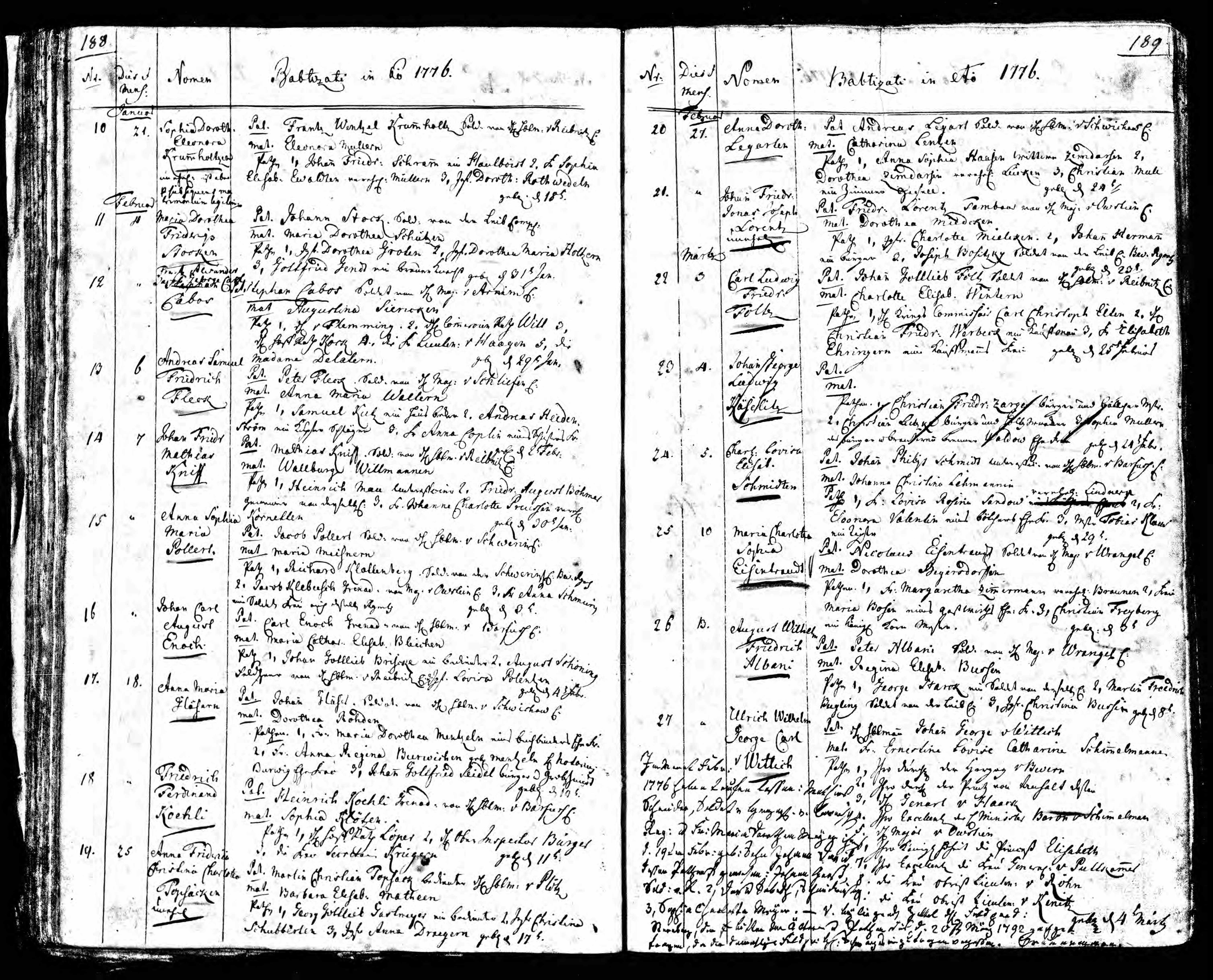 Franz Alexander George Carl war das dritte Kind der Familie, geboren am 29. Januar 1776 in Stettin. Der Taufeintrag findet sich im Kirchenbuch der Garnisonkirche als Eintrag Nummer 12.