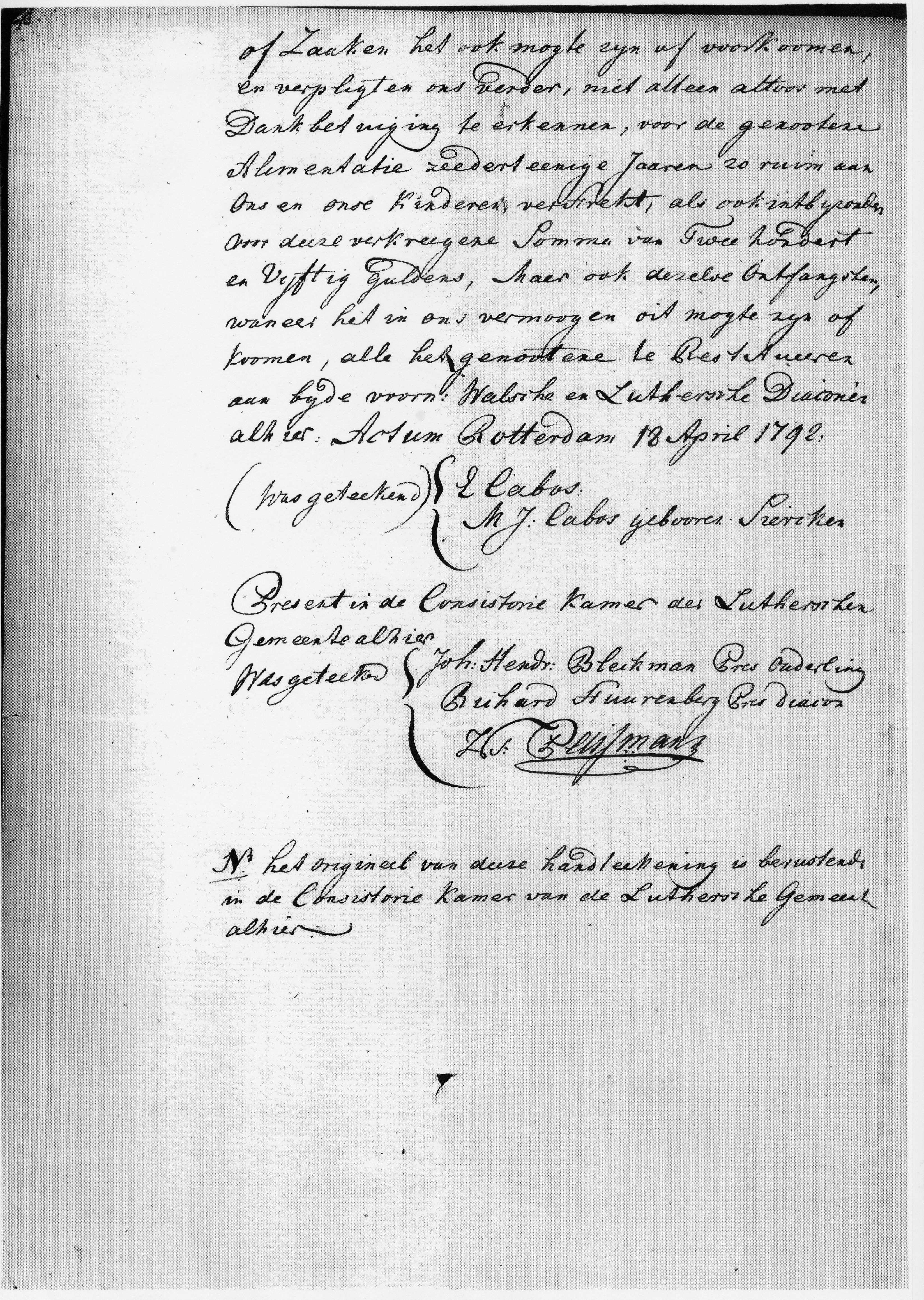 Unterhaltsvertrag mit dem Konsistorium Rotterdam (1792)¶